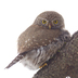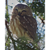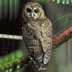 Boreal Owls, known in Eurasia as Tengmalm's Owls, are small owls of the north. They have yellow eyes and facial disks that are mostly white, edged with broken black rings. Their heads, which do not have ear-tufts, are dark and tightly dotted with light spots. Their backs are covered with spots larger and farther apart than those on the head. Breasts are brown, with white spotting and streaking. Fledglings are uniformly brown, with white eyebrows and throats.