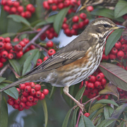A Redwing wintering in a neighborhood in Olympia (Thurston County) was seen by hundreds of birders between 20 December 2004 and 14 March 2005.