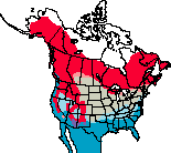 Ruby-crowned Kinglets migrate slightly earlier in the fall and later in the spring than Golden-crowned Kinglets. They are less well adapted to cold and thus winter farther south than Golden-crowned Kinglets. How far north they remain in any given year is typically determined by temperature.